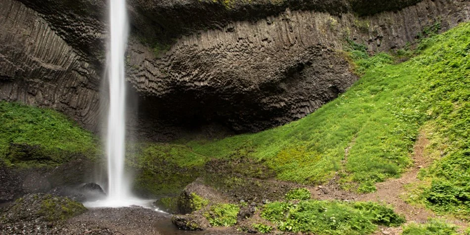 Latourell Falls is the first, main waterfall just east of Portland, as you enter the gorge. It plunges 224 ft over a beautiful wall of columnar basalt. There are a couple of nice spots to photograph the falls from. One is an upper viewing area where you can frame the falls with the trees from the trail. The second spot is near the base of the falls, where you can walk around for multiple angles. It can be difficult to get a photo without a person in it unless you visit very early in the day.