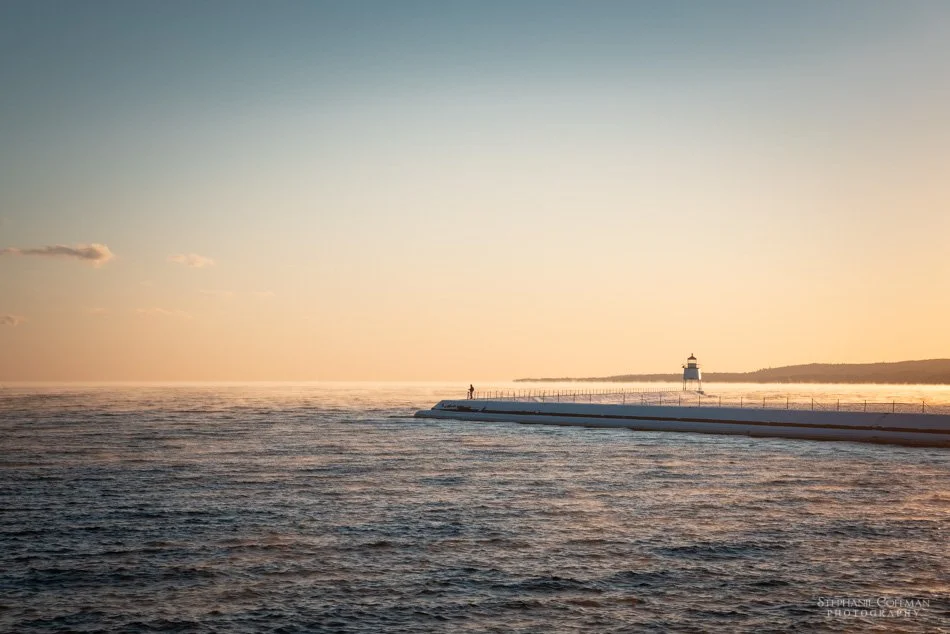 We made a couple of stops along the Lake Superior shore before arriving at our rental for the next 3 nights. We stayed at a cute little cabin right on the shore of Lake Superior. It had a big, picture window overlooking the lake. For sunset, we drove about 15 minutes north to Grand Marais and took photos at Artists Point and along the breakwall.